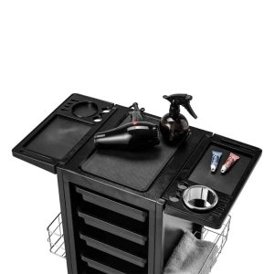 Kapperstrolley van metaal met laden zonder deuren