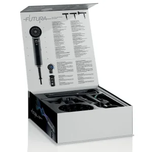 De professionele haardroger Futura is een compacte, krachtige haardroger van de nieuwe generatie, uitgerust met diffuser en richtmondstukken voor verschillende stylings die de droogtijd verkorten.